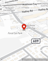 Across the street from the Hadley Shopping Center next to the Fountainbleau Diner